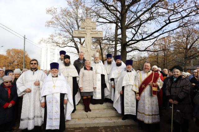 Чин благословения и освящения новосооруженного креста провели совместными усилиями священнослужители Храма Рождества Христова во главе с настоятелем Сергием Киселёвым и Храма иконы Божией Матери «Державная» во главе с настоятелем Дмитрием Третьяковым.