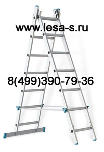 Лестница алюминиевая трехсекционная 8 ступеней, профильная труба.